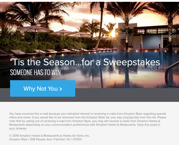 Various eblasts enticing Kimpton fans to take home the cool stuff guests experience at Kimpton Hotels around the country. 1 | 2 | 3 | 4 | 5