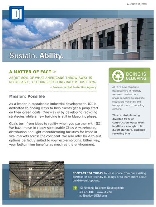 Agency: The Jones Group This industrial real estate developer sends a message that they can help corporate clients reach their environmental goals.