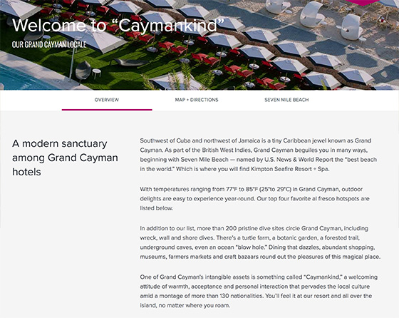 Kimpton Seafire opened on Seven Mile Beach as the hotel company’s first-ever property outside the U.S. — and the first new-build on Grand Cayman in 10 years. In a copywriter’s pinch-me-I’m-dreaming fantasy, I was fortunate to visit the island as part of the website writing process.